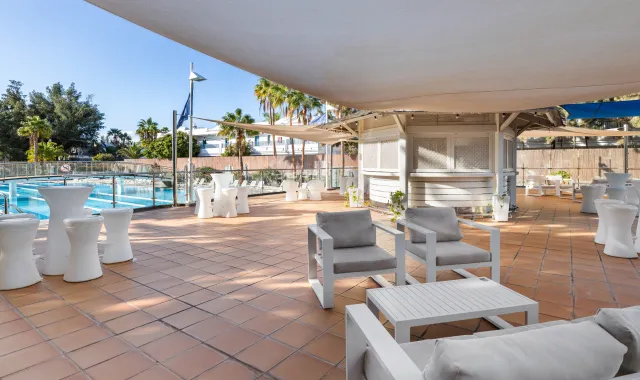 Se está tan bien en el Área Adults Only, que no querrás salir por nada del mundo. Al final de la piscina, encontrarás un Pool Bar con una zona de mesas, sofás y sillas. Solo tendrás que elegir si relajarte con un delicioso coctel en tu hamaca o en una de las mesas del bar.